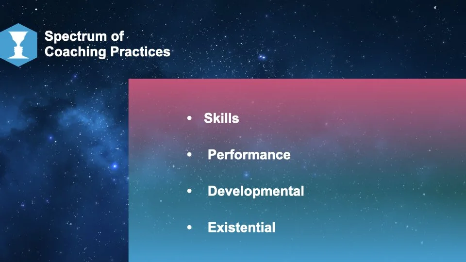 Developmental coaching, eg Gestalt, works at a more profound level - focusing on beliefs, values, attitudes and the effect on people’s relationships. It addresses how individuals and teams experience and react to change so most applicable for leadership issues